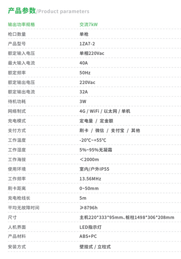 ·多种支付、充电模式,适应各类用户操作习惯 ·7孔国标枪头,支持车辆电子锁功能,安全便捷