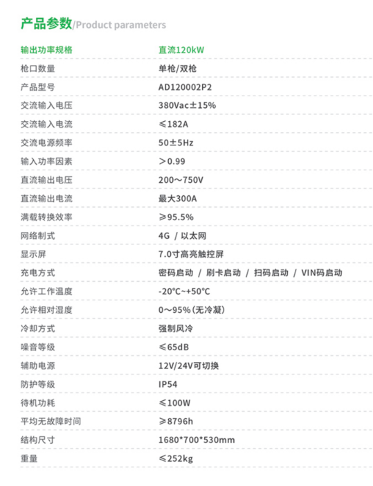 此系列充电桩采用落地式设计,外观简洁大方,框架设计稳定,功能配置齐全,整机功率根据模组灵活配置,友 好的人机交互界面方便用户操作使用,模块化设计方便设备长期维护,是一款适合各类新能源充电建站需求的 高效直流充电设备。